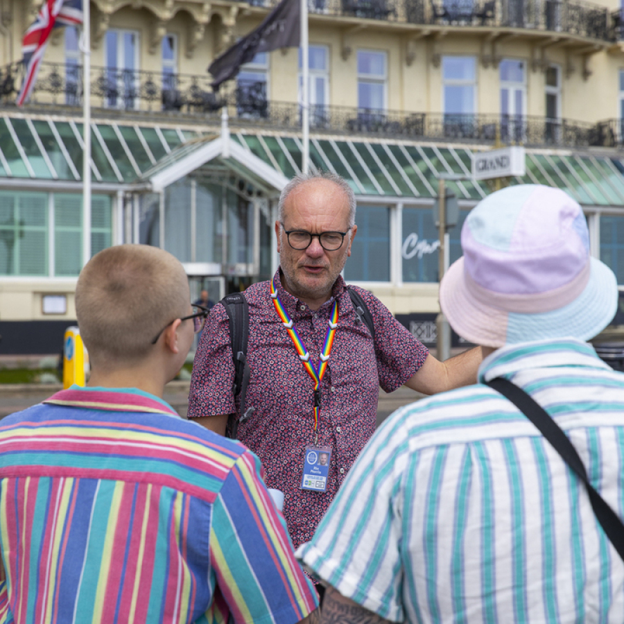 Peers and Queers is a tour of Brighton from a lesbian, gay, bisexual, trans and queer perspective, in a colourful 90-minute walk along the beach and historic city centre.